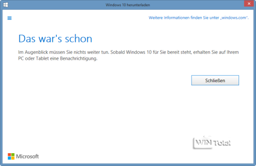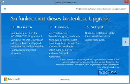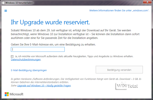 Ein Klick auf „Kostenloses Upgrade reservieren“ – das war’s dann schon.