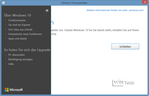 Der Link oben rechts „Weitere Informationen finden Sie unter windows.com“ führt noch einmal zu Angaben darüber, wie Sie auf Windows 10 aktualisieren. (Link mit dem IE öffnen)
