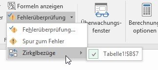Wo sich diese Zirkelbezüge genau finden lassen, zeigt die Statusleiste bei mehreren Tabellenblättern nicht an. Sie sehen erst die betroffene Zelle, wenn Sie auf dem Tabellenblatt mit dem Zirkelbezug sind.