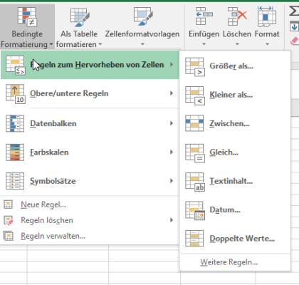 Mit der WENN-Funktion können Sie nicht nur logische Prüfungen vornehmen und auf Grundlage der Bedingungen für Wahr oder Falsch Ergebnisse ausgeben. Auch das Ändern der Farbe in einer Zelle oder Ähnliches ist über die Formel möglich. Hierfür müssen Sie die bedingte Formatierung erstellen. Sie finden diese im Menüband von Excel im Reiter Start.