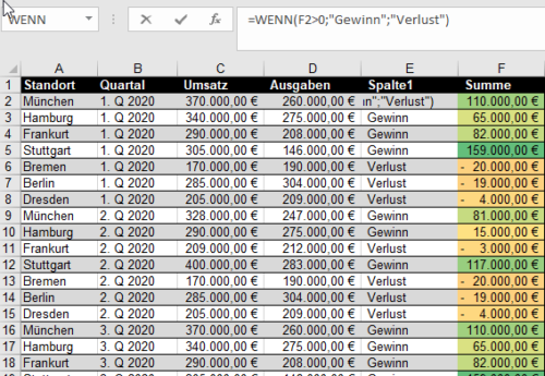 =WENN(F2>0;"Gewinn";"Verlust")