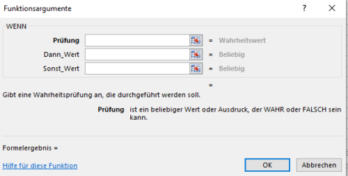 Der Aufbau der WENN-Formel ist auf den ersten Blick sehr simpel und hat folgende Funktionsargumente:
