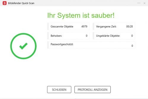 In unserem Test überzeugte der Bitdefender Virenschutz nur teilweise durch seine Schnelligkeit: Für den Quick-Scan braucht die Software weniger als eine Minute, für einen vollständigen System-Check waren es im Erstlauf allerdings rund 75 Minuten. Durch individuelle Anpassungen, zum Beispiel dem Ausschluss bestimmter Dateien vom Scan, kann die Scanzeit aber deutlich verkürzt und gleichzeitig die Reaktionszeit des Computers erhöht werden.