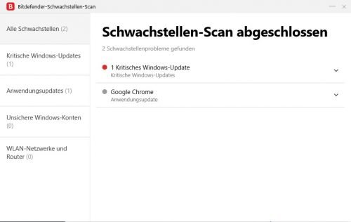 Ein besonders praktisches Feature präsentiert Bitdefender mit dem integrierten Schwachstellenscanner: Mit nur einem Klick durchforstet er Ihr System nach veralteter Software und fehlenden Patches und informiert Sie, wenn es mal wieder Zeit für ein Update ist.