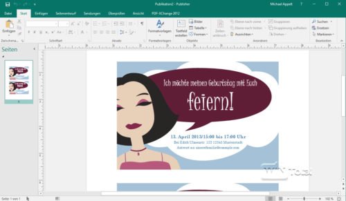 Viel unbekannter, aber für diesen Zweck noch besser geeignet ist aber Microsoft Publisher, das auf vielen Rechnern mit einer Office-Installation eher ein Schattendasein führt. Das Layout-Programm von Microsoft ist gerade für solche Aufgaben konzipiert. Es lässt sich wie Word bedienen, bietet aber viele Hilfsmittel wie magnetische Linien und Textboxen und damit mehr Flexibilität.