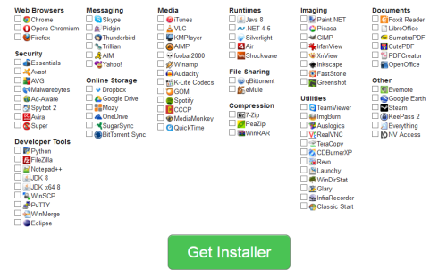 Ninite kommt in dreierlei Form daher. Wer es ausprobieren möchte, kann dies kostenlos mittels des Ninite Installers machen. Mit dem Installer lassen sich alle von Ninite unterstützen Programme installieren und – bei wiederholter Ausführung – dieselben Programme aktualisieren.
