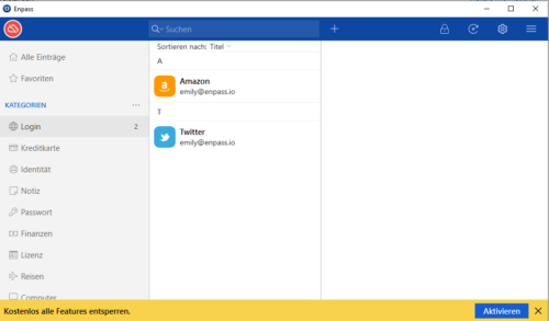 Enpass ist zumindest für den Desktop kostenlos nutzbar und nicht künstlich in seinen Funktionen eingeschränkt. Gegen eine kostenlose Registrierung erhalten Sie noch weitere Features wie ein Dark Theme, die Möglichkeit der Entsperrung mit Windows Hello und benutzerdefinierte Vorlagen und Kategorien.