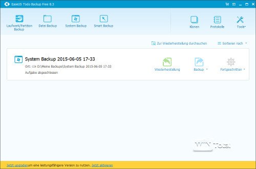 Gute, kostenlose Vertreter sind EaseUS Todo Backup oder auch der AOMEI Backupper, welche gegen eine geringe Gebühr ein paar Features zusätzlich oder mehr Geschwindigkeit beim Backup bieten. Wem die beiden Programme bereits zu viele Features bieten, der könnte an dem kostenlosen AOMEI OneKey Recovery Gefallen finden, welcher das System als Abbild in einen verstecken Bereich auf der Festplatte speichert.