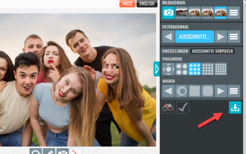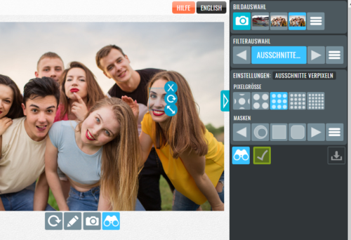 - Klicken Sie im Feld „Filterauswahl auf „Ausschnitte verpixeln“, welcher bereits voreingestellt ist.