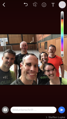 Dazu wählen Sie über das „Plus-Symbol“ zunächst das Foto aus, welches Sie versenden möchten. WhatsApp öffnet dann einen Editor mit dem Bild. Rechts oben finden Sie ein Stiftsymbol. Wenn Sie darauf tippen, öffnet sich eine Farbskala. Ganz unten ist keine Farbe, sondern die Funktion zum Verpixeln von Bildern. Sie können mit dieser „Malfarbe“ dann direkt auf den Bildern mit dem Finger malen und so Bereiche unkenntlich machen.