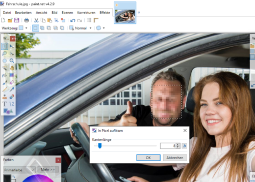 Wenn Sie Gesichter oder Kennzeichen in Fotos verpixeln möchten, gibt es dazu zahlreiche kostenlose Programme und auch online passende Lösungen.