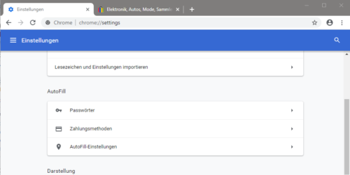 Google Chrome und eine Vielzahl der vielen Browser auf Basis von Chromium wie beispielsweise Opera, speichern auf die gleiche Weise die Kennwörter für Webseiten. Chrome verwaltet die Kennwörter in den Einstellungen im Abschnitt „AutoFill“.