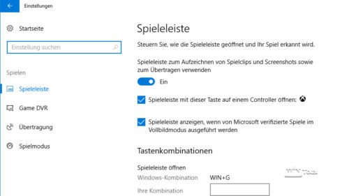 Die Game Bar – bzw. Spielleiste im deutschen Windows 10 genannt – erscheint kurz bei Start eines Spiels und kann über die Kombination Win+G aufgerufen werden.