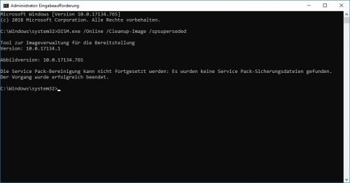 ein, um den Vorgang zu starten. Die alten oder nicht mehr benötigten Dateien werden nun aus WinSxS entfernt bzw. von der Festplatte / SSD gelöscht.