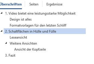 Word nutzt dann diese Gliederung für das Inhaltsverzeichnis und blendet Unterüberschriften auch als solche ein.