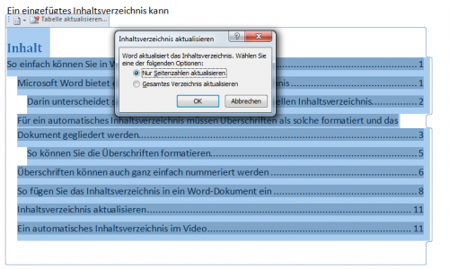 4. Inhaltsverzeichnis aktualisieren und bearbeiten