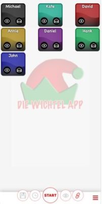 Damit legen Sie im Handumdrehen eine Teilnehmerliste an und markieren die Einträge mit passenden Farben. Die Zuteilung der Wichtel wird einfach per Klick veranlasst. Danach wird das Smartphone herumgereicht, damit jeder seinen zufällig zugewiesenen Wichtel aufdecken kann. Bei Bedarf können Sie die Wichtel auch per Mail bekanntgeben und so auch nicht anwesende Mitspieler informieren.