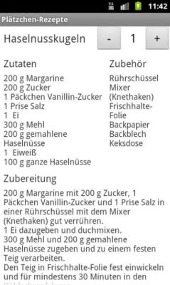 Autor Uwe Gerdes hat in der App seine Lieblings-Rezepte zusammengetragen und diese in übersichtliche Arbeitsschritte unterteilt. Darunter finden sich nicht nur bewährte Klassiker, wie z.B. Bethmännchen, Schokomakronen, Haselnusskugeln oder Nussstangen, sondern auch ausgefallene Sorten wie Heidesand oder Husarenkrapfen.