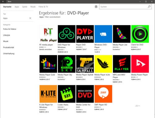 - Im Windows Store gibt es keine kostenlosen DVD-Player für Windows