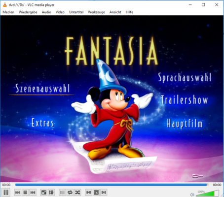 Über die Menüzeile können Sie unter Audio die Tonspuren wechseln, über Wiedergabe die Kapitel anspringen oder bei Untertitel eventuell vorhandene Untertitel anschalten.
