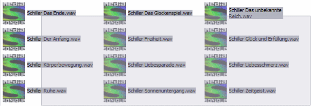 An einem Beispiel werden wir nun zeigen, was die Optionen bewirken. Zuerst lesen wir eine CD mit EAC ein. Dabei werden wir absichtlich bei jedem Titel den Künstler im Dateinamen angeben. Dieser soll anschließend bei jedem Titel mit Joe wieder gelöscht werden. Außerdem soll jeder Titel eine laufende Nummer bekommen. Als Namensvergabeschema in EAC wählen wir dazu zu Demonstrationszwecken %A %T. Nachdem die Titel eingelesen sind (hier Wave-Dateien), sieht das im Windows-Explorer so aus: