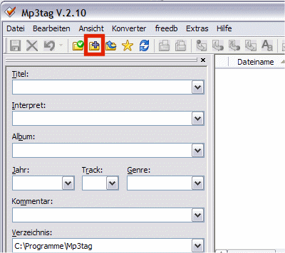 Unser Ziel ist es, mehrere Dateien, die noch kein ID3-Tag haben, schnell mit einem solchen auszustatten. Dazu klicken wir auf das Symbol mit dem Ordner und einem lilafarbenen Plus: