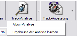 Nachdem man die zu ändernden Dateien hinzugefügt hat, müssen die MP3s erst einmal analysiert werden. Dies zeigen wir exemplarisch am Beispiel von Dateien unterschiedlicher Lautstärke, die auf eine CD gebrannt werden sollen. Dazu müssen alle Dateien markiert werden. Dies erreicht man wie in vielen anderen Programmen mit der Tastenkombination [STRG]+[A]. Anschließend wählt man beim 3. großen Icon von links „Track-Analyse“ aus und klickt anschließend auf selbigen Button: