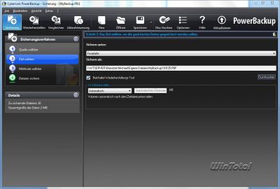 PowerBackup erstellt Sicherheitskopien von Dateien und Ordnern auf DVD/CD oder Blu-Rays, kann die Backups aber auch auf (USB-)Festplatten oder im Netzwerk ablegen. Dazu wird das Backup dann in einem eigenen Containerformat gespeichert. Neben dem Backup kann auch ein Wiederherstellungstool den Weg auf das Sicherungsmedium finden.