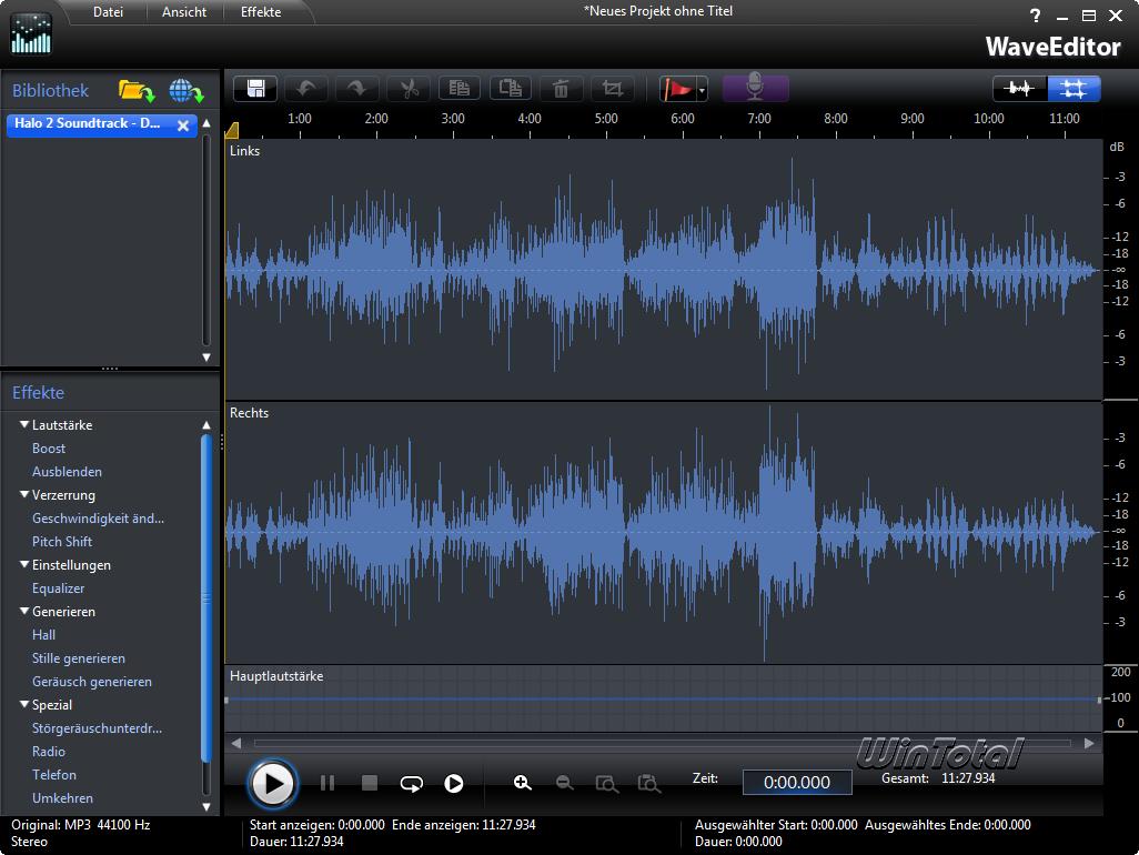 Zur Audiobearbeitung (z.B. für die eigene Videoproduktion mit PowerDirector) liefert Cyberlink den hauseigenen WaveEditor, welcher mit Schneide- und Trimmfunktionen, zahlreichen Effekten und Unterstützung von VST-Plugins genug Möglichkeiten zum Bearbeiten eigener Audiodateien bietet. Dank der 50-fachen Undofunktion können Änderungen sehr leicht wieder rückgängig gemacht werden.