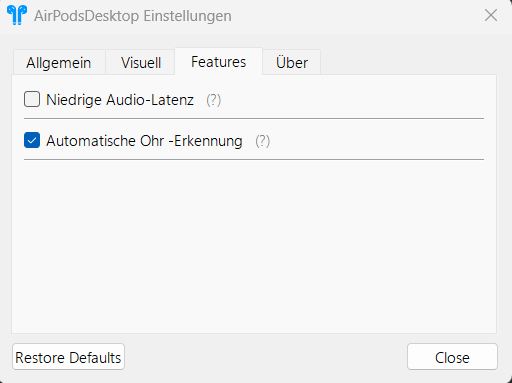 In den Einstellungen des Tools können Sie außerdem die In-Ear-Erkennung aktivieren oder die geringe Latenz für Audio einschalten. Letzteres benötigt jedoch mehr Energie.