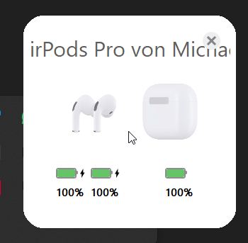 Mit dem kostenlosen Tool AirPodsDesktop wird dieses Feature in Windows nachgerüstet. Nach der Installation der Software sehen Sie eine Pop-up-Animation zur schnellen Verbindung, wenn die AirPods (es werden aktuell alle Modelle unterstützt) in der Nähe bei offenem Case gefunden werden. Zusätzlich wird der Akkustand angezeigt, wenngleich die Anzeige nicht zu 100 % verlässlich ist.