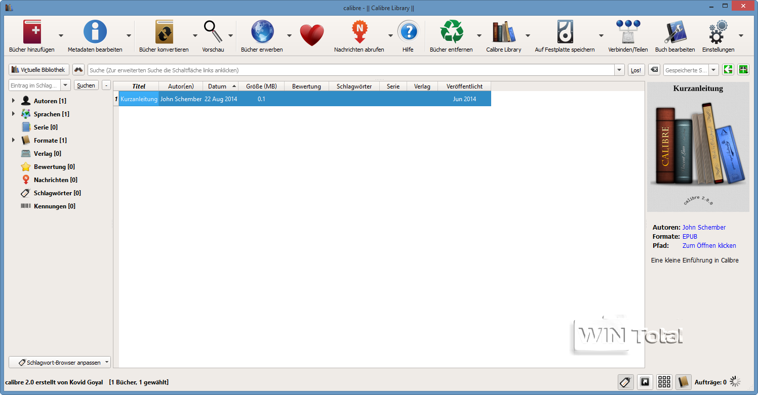 Calibre ermöglicht die Verwaltung sowie das Lesen und Konvertieren von E-Books in sehr vielen Formaten.