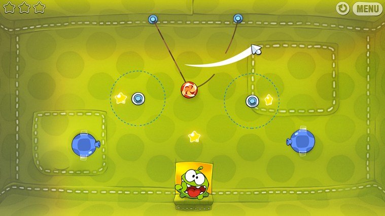 Mit dem Finger oder dem Cursor der Maus lässt sich das Seil trennen, doch verschiedene Hindernisse, wie beispielsweise Luftblasen, Luftballons oder Laser, erschweren den Weg der Süßigkeit in den Mund des Monsters. Zudem müssen Sie dabei drei Sterne einsammeln. Das farbenfrohe Design rundet das Spielvergnügen ideal ab.