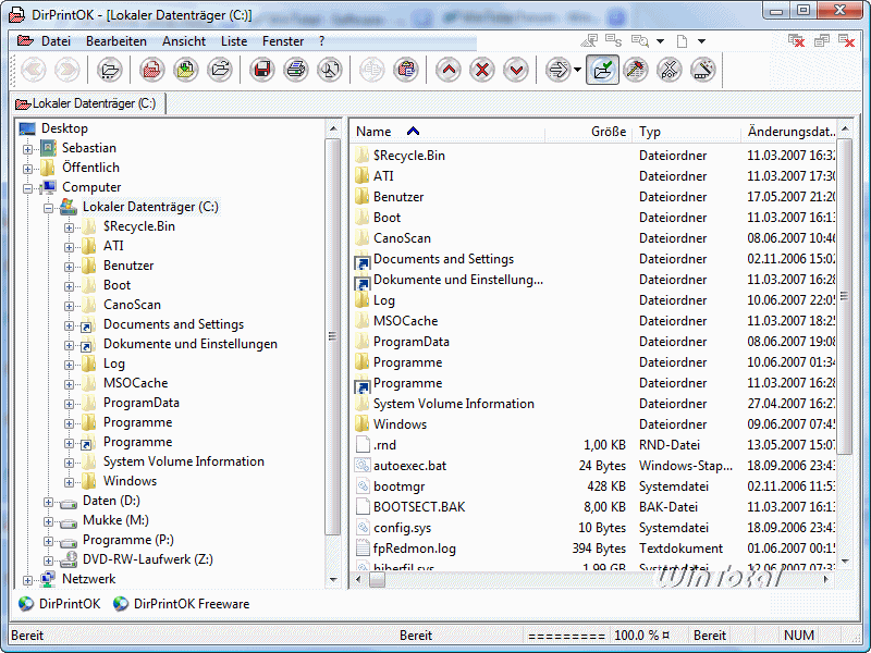 Mit DirPrintOK Inhalte von Laufwerken oder Verzeichnissen drucken oder speichern