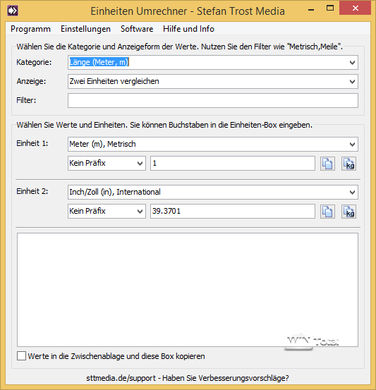 Eine Betrachtung der Einheiten kann in verschiedenen Darstellungen erfolgen. Der Einheiten Umrechner kann Daten als Tabelle oder Gegenüberstellung ausgeben.