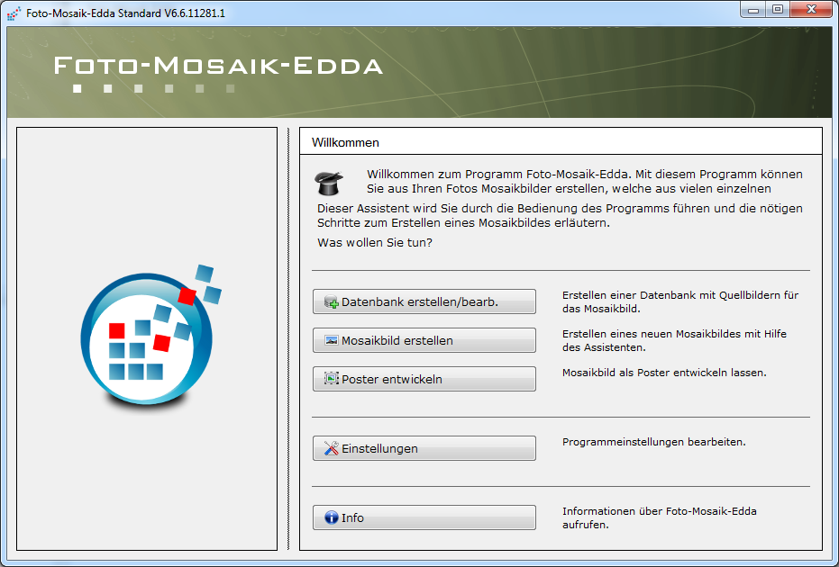 Foto-Mosaik-Edda erstellt Ihnen aus vielen Einzelbildern ein Mosaik-Foto Ihrer Wahl und bietet dabei noch reichlich Anpassungsmöglichkeiten.
