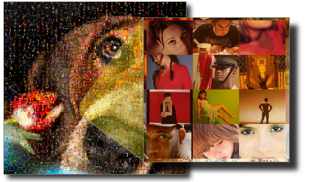 Beim Mosaik-Bild-Effekt wird ein Bild aus vielen einzelnen Fotos als Mosaik so zusammengesetzt, dass aus der Ferne das Originalbild und aus der Nähe die vielen Einzelbilder zu sehen sind. Der Effekt kommt besonders gut zur Geltung, wenn die Mosaikbilder in Postergröße oder größer ausgedruckt werden.
