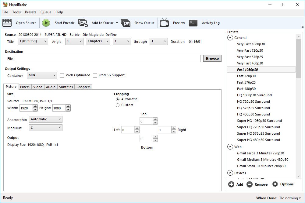 Handbrake bietet Filter, Audio- und Videofunktionen