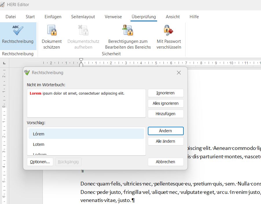 Mit dem HERI Editor können Sie professionelle Dokumente erstellen, bearbeiten und formatieren. Tabellen, Bilder, Kopf- und Fußzeilen sowie umfangreiche Textformatierungen sind inklusive. Die integrierte Rechtschreibprüfung in mehreren Sprachen sorgt für fehlerfreie Texte.