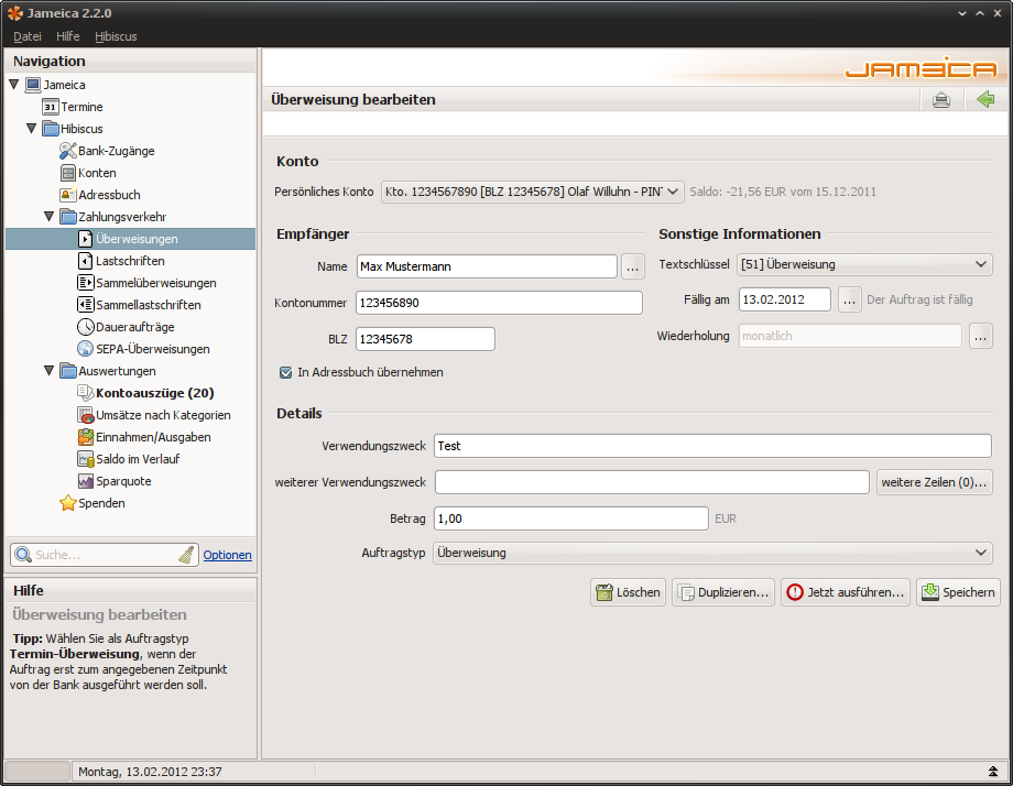 Hibiscus unterstützt alle Bankverfahren und viele Banking-Funktionen