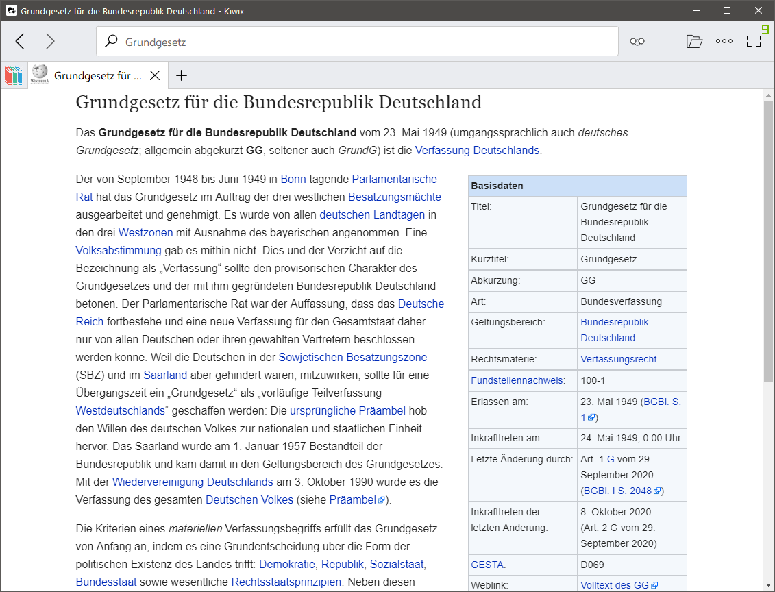 Mit Kiwik können Sie diese Probleme umgehen. Der Reader, welcher neben Windows auch für macOS, Linux und als Kiwik Reader für Android bzw. Kiwik Reader für iOS verfügbar ist, benötigt ergänzend noch die Offline-Daten der verschiedenen Projekte wie beispielsweise Wikipedia. Diese werden im Wiki von Kiwik für fast alle Sprache in verschiedenen Ausführungen (nur Text, kleine Bilder, vollständiger Umfang) zum Download angeboten und müssen als ZIM-Datei nur in den Reader eingebunden werden.
