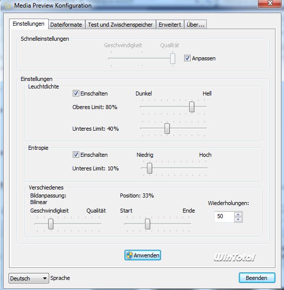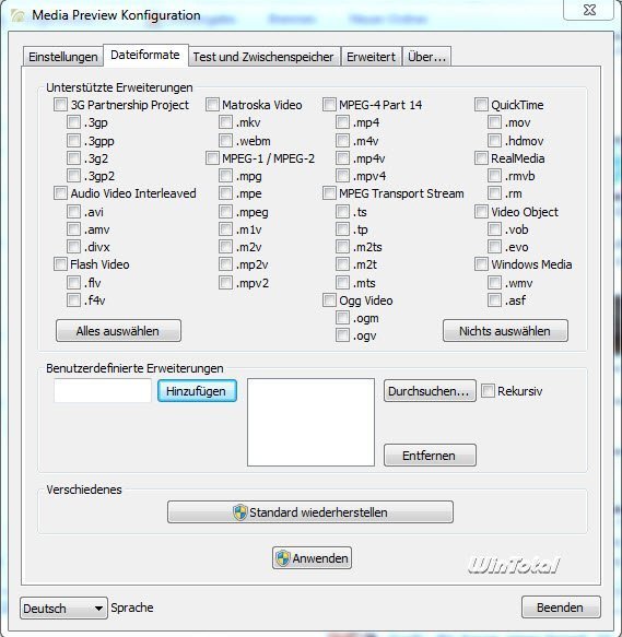 Mit der kostenlosen Erweiterung Media Preview ist Windows in der Lage, fast alle Videoformate für ein Vorschau zu lesen. Sie können in den Einstellungen nicht nur festlegen, welche Formate unterstützt werden sollen, sondern auch die Qualität, Filmposition des Thumbs und vieles mehr.