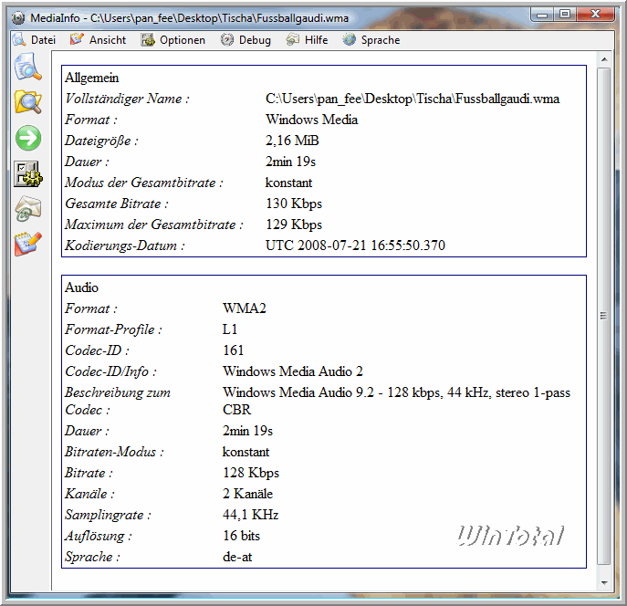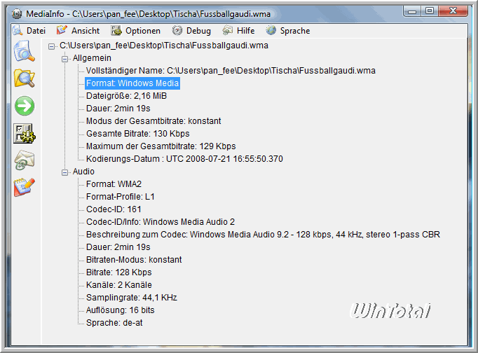Zu den Hauptfunktionen von MediaInfo zählen: