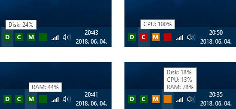 myResources zeigt die aktuelle Auslastung und die Zugriffe auf Datenträger, CPU, Arbeitsspeicher und Netzwerkverbindung im Systemtray als Zahlen und optional als Graphen an.