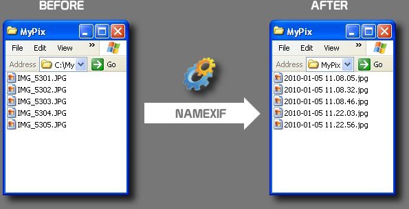 Namexif wandelt automatisch den Dateinamen von Fotos nach dem Datum aus den EXIF-Informationen um.