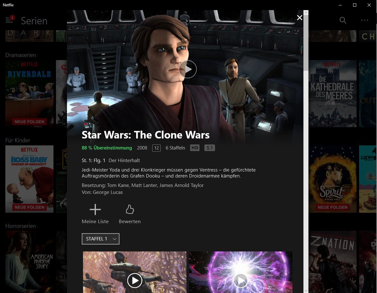 Die Netflix App für Windows bietet Filmgenuss in höchster Qualität, Download von Serien und Filmen zum Offline-Schauen und weitere Features.