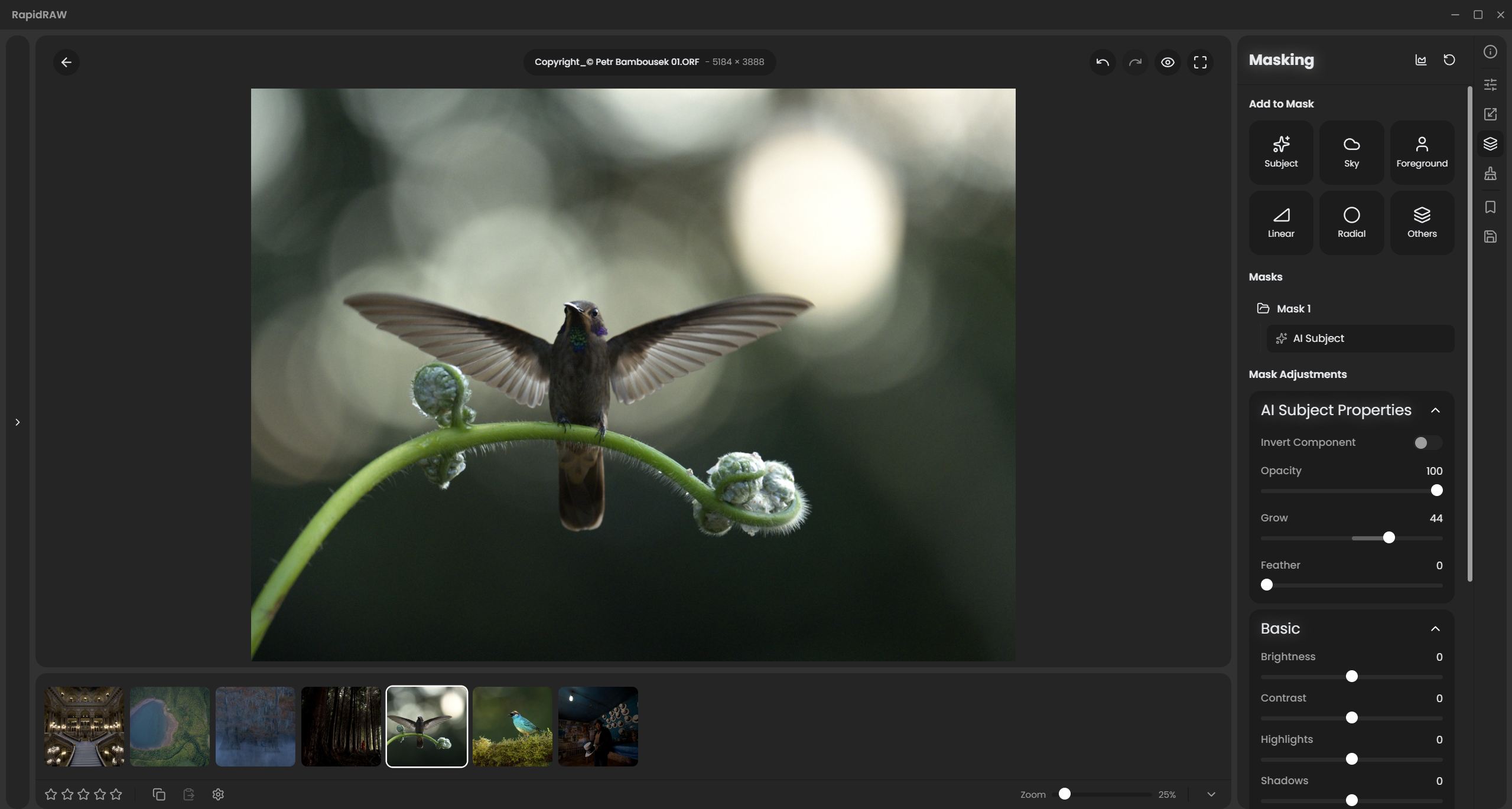 Der Editor setzt vollständig auf einen nicht-destruktiven Ansatz: Alle Bearbeitungen werden in separaten Sidecar-Dateien gespeichert, sodass die Originalbilder stets unverändert bleiben. Unterstützt werden zahlreiche RAW-Formate mit 32-Bit-Farbtiefe für maximale Präzision. Zu den zentralen Werkzeugen gehören Tonwert- und Farbkorrekturen, HSL-Regler, Kurven, Schärfen, Klarheit, Rauschreduzierung, Dehaze und Vignetten. Ergänzt wird das Ganze durch KI-gestützte Maskierung, die Motive und Vordergründe automatisch erkennt, sowie generative KI-Funktionen wie Inpainting über ComfyUI.