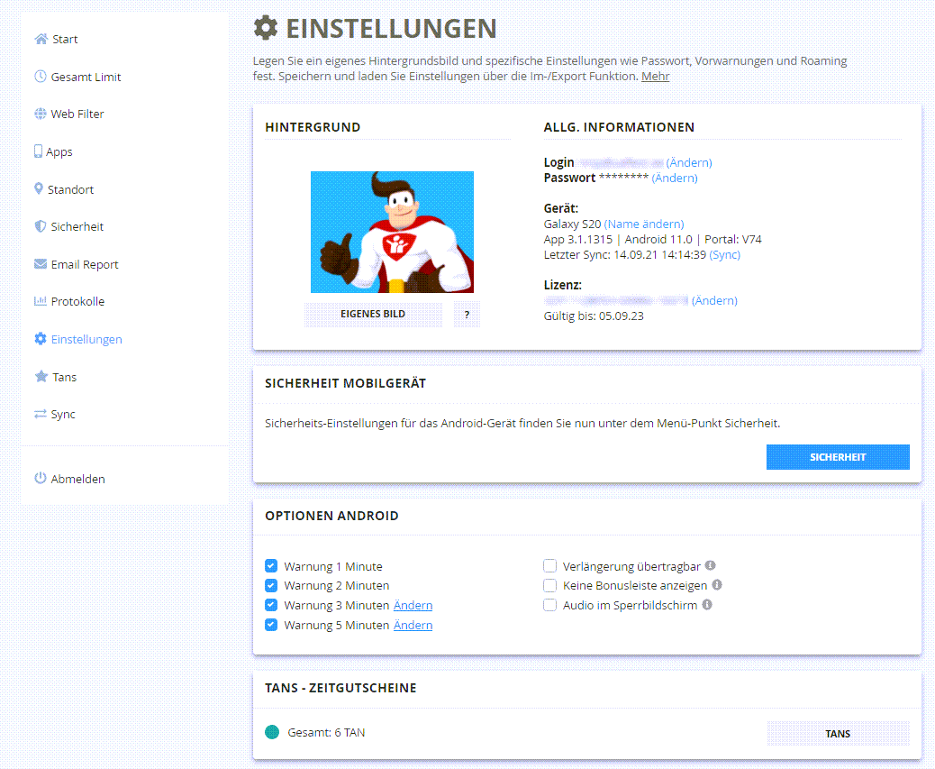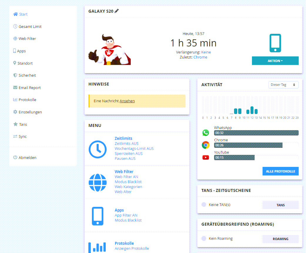 - sehr einfache Möglicheit, das Nutzungsverhalten der Kinder zu beschränken und limitieren