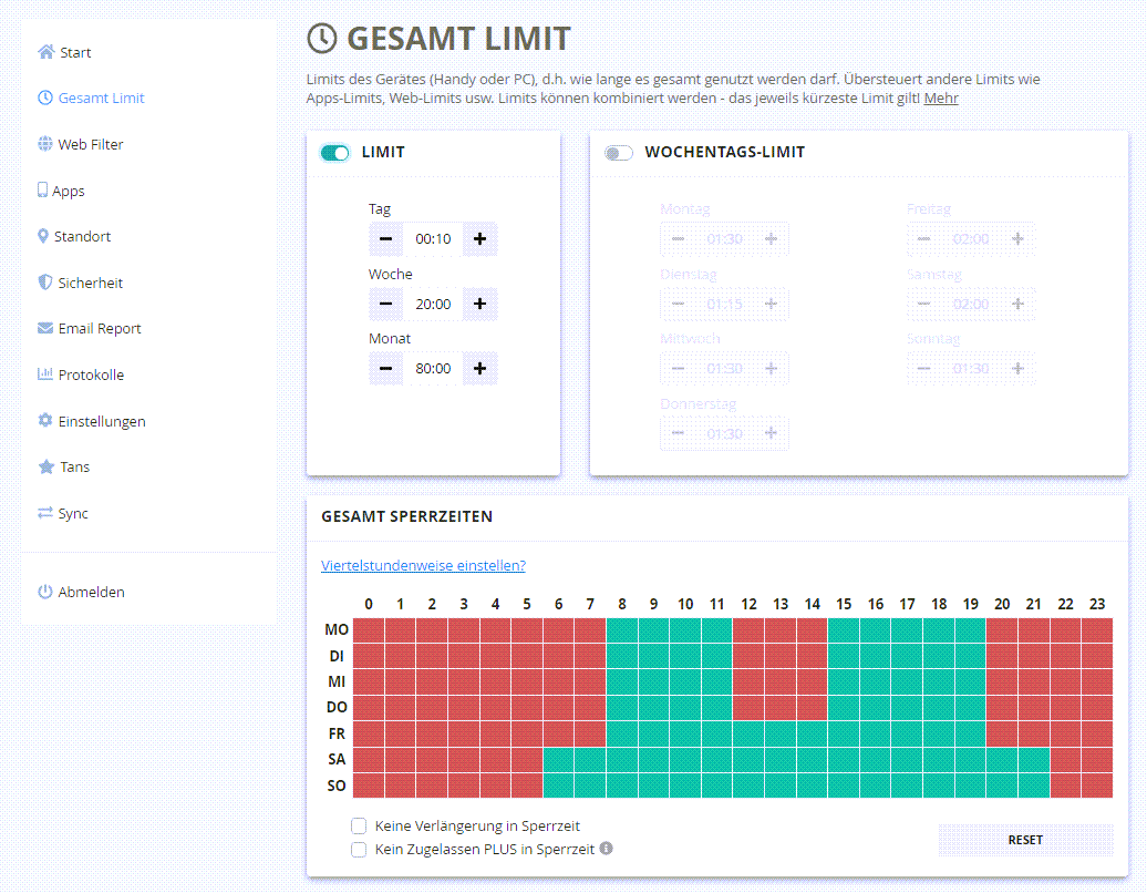 Nutzungs- und Sperrzeiten für PC-Nutzung und Internet