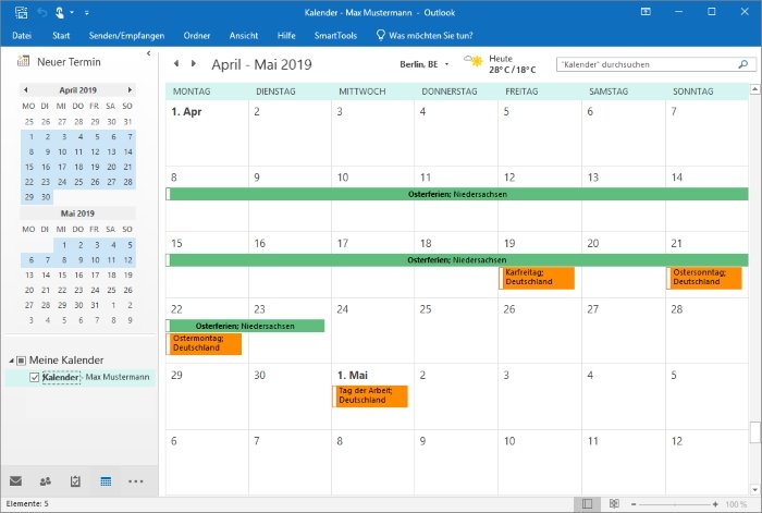 SmartTools Ferien- und Feiertags-Assistent für Outlook kann Ferientermine und Feiertage in beliebige Outlook-Kalender eintragen.